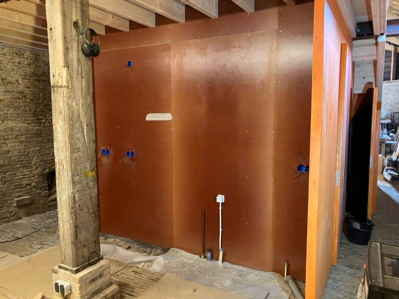 VRIJDAG 7 FEBRUARI 2025. ER WERD HARD GEWERKT OM DE GROND HELEMAAL GEISOLEERD TE HEBBEN VOOR HET ZAND IN DE SCHUUR ZOU KOMEN!