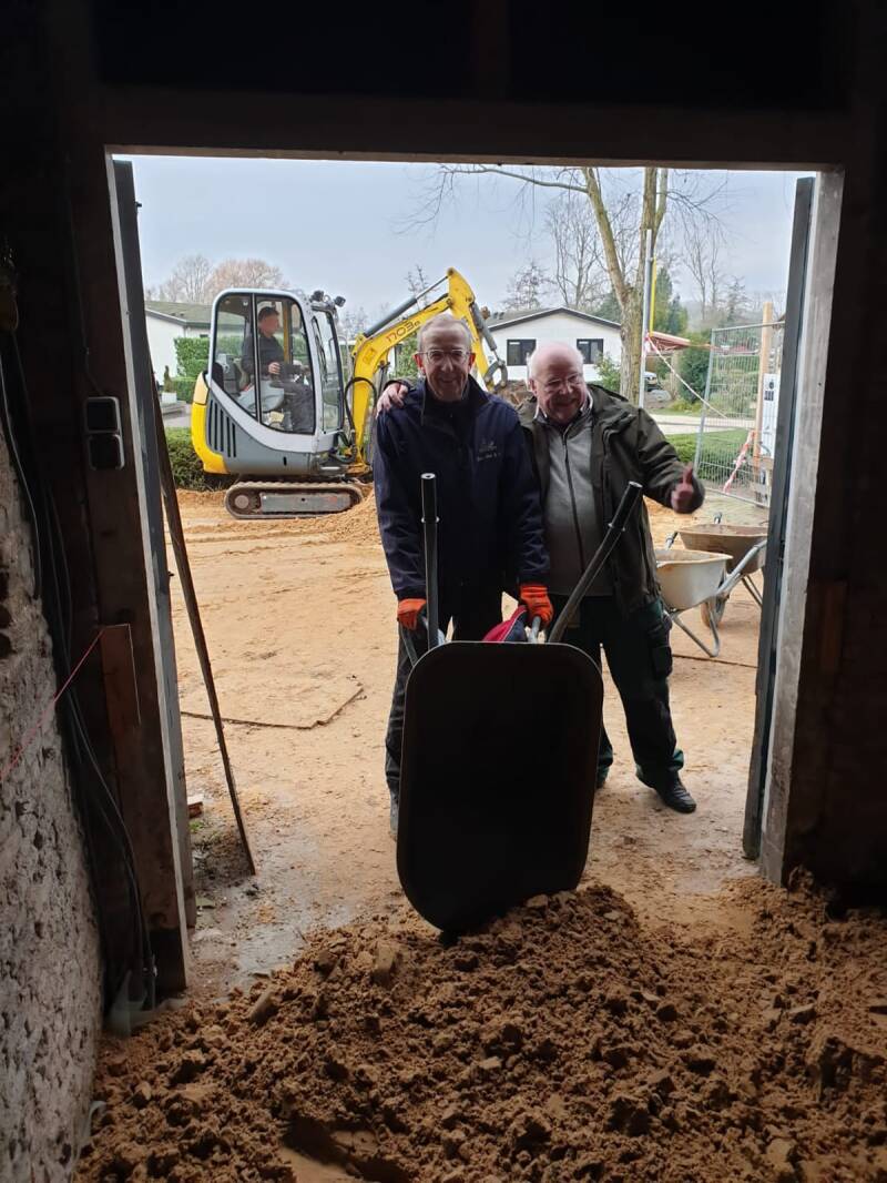 Helaas was er ook wat wateroverlast in de turfschuur. MAAR....... Er werd ook een oude vloer gevonden!!!!!!!